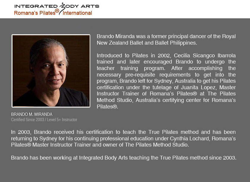 | 5 | Brando Miranda | Makati City | 2003 | February 2024 - Manila, Philippines | www.ibapilates.com |